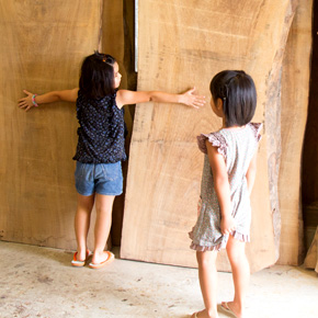 ほくたちは、実際に木の素材を見てもらい、お客様のご希望や生活環境などいろんなお話をした上で、家具をつくるようにしています。